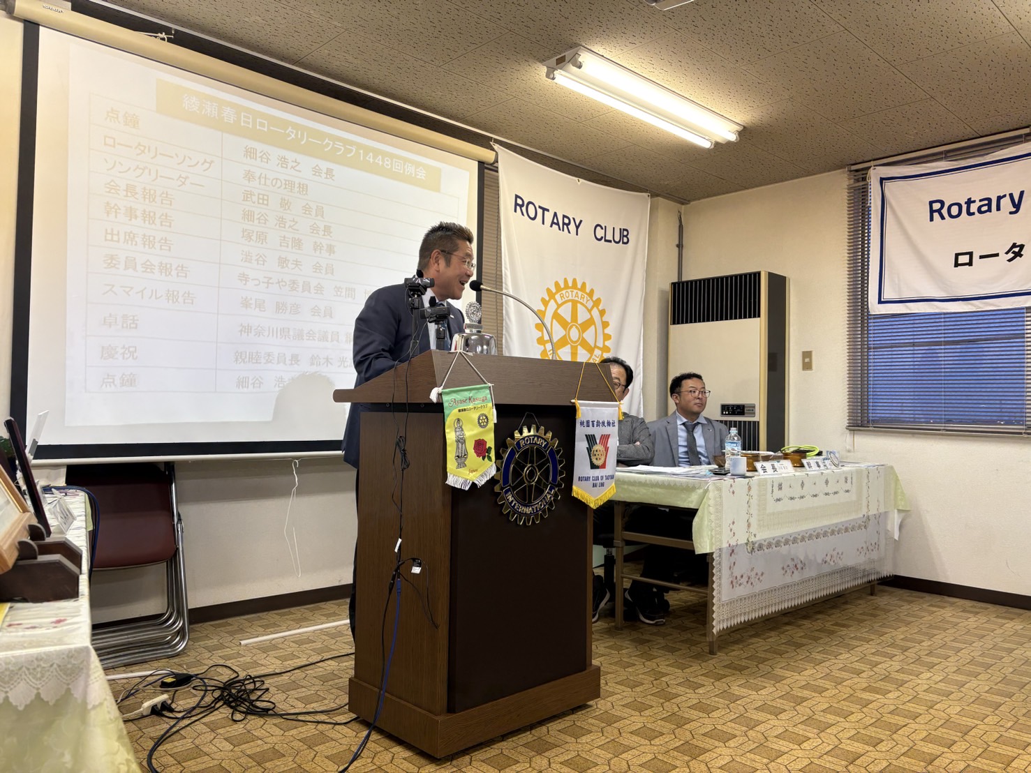点鐘: 細谷浩之会長 奉仕の理想 ソングリーダー武田敬会員