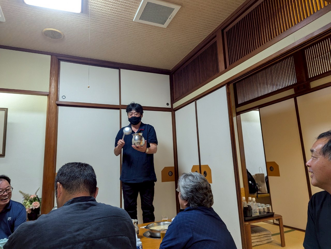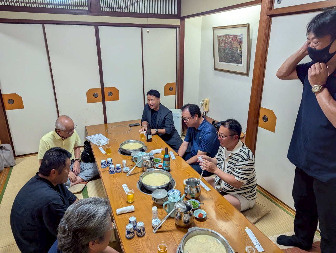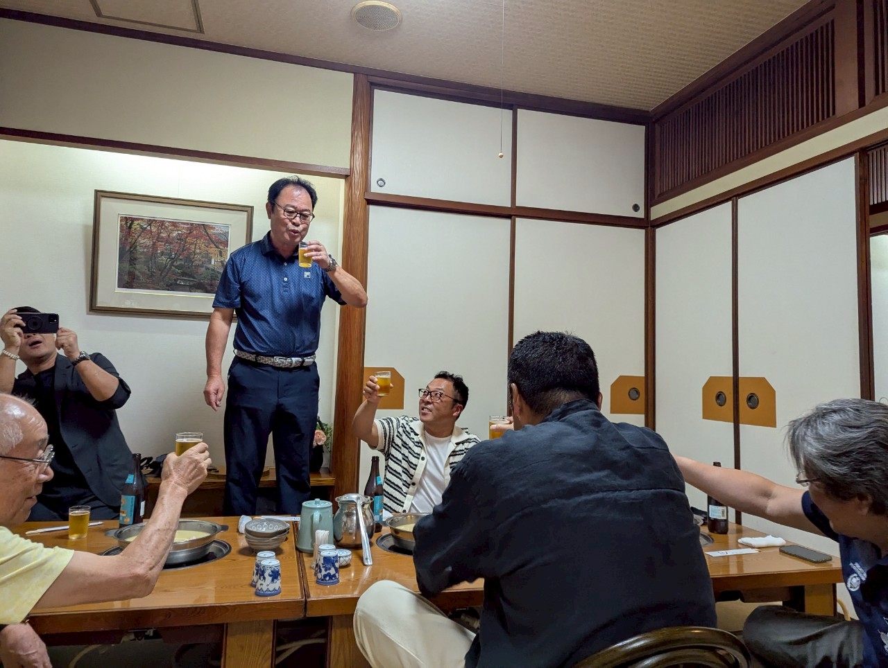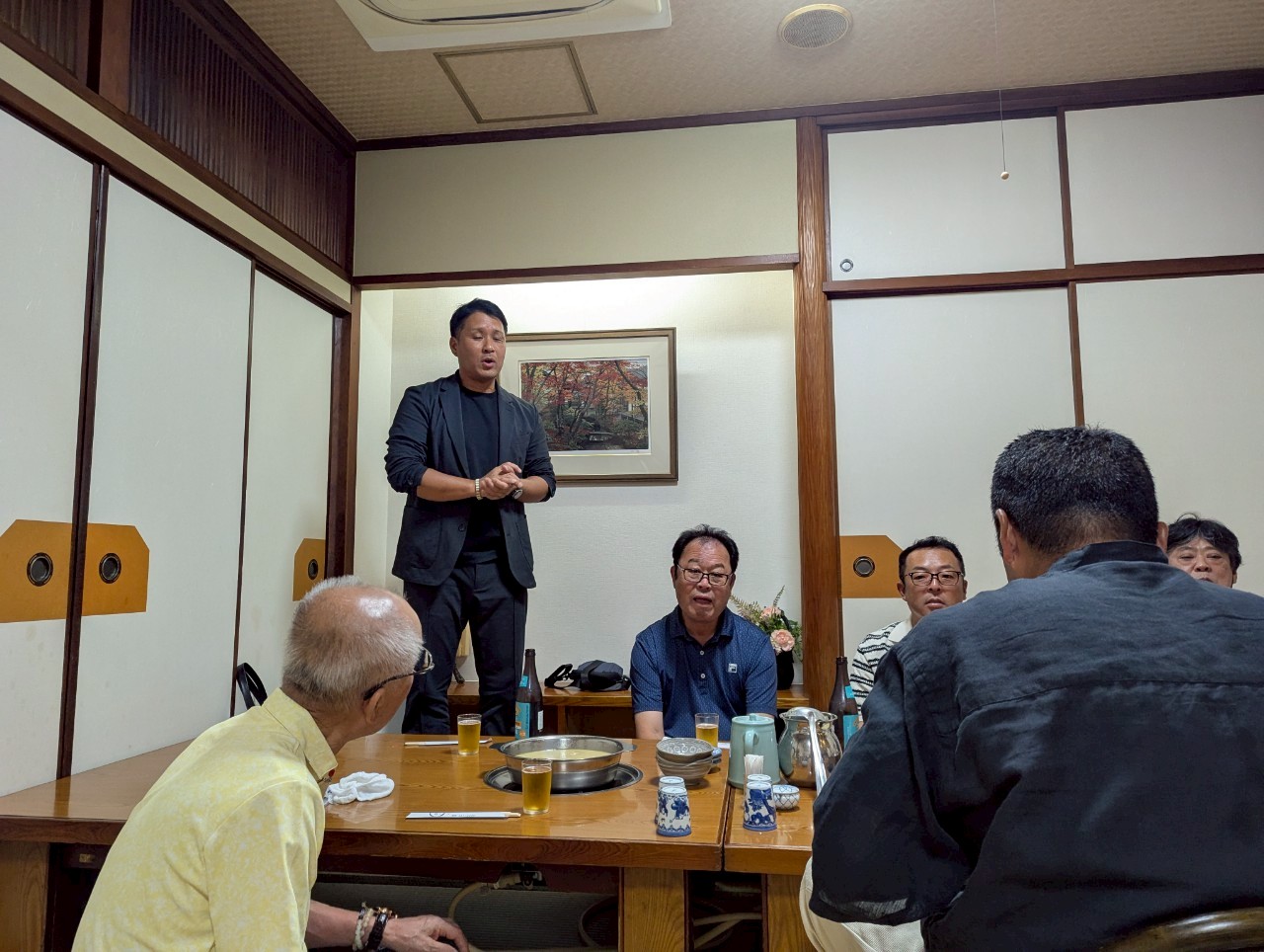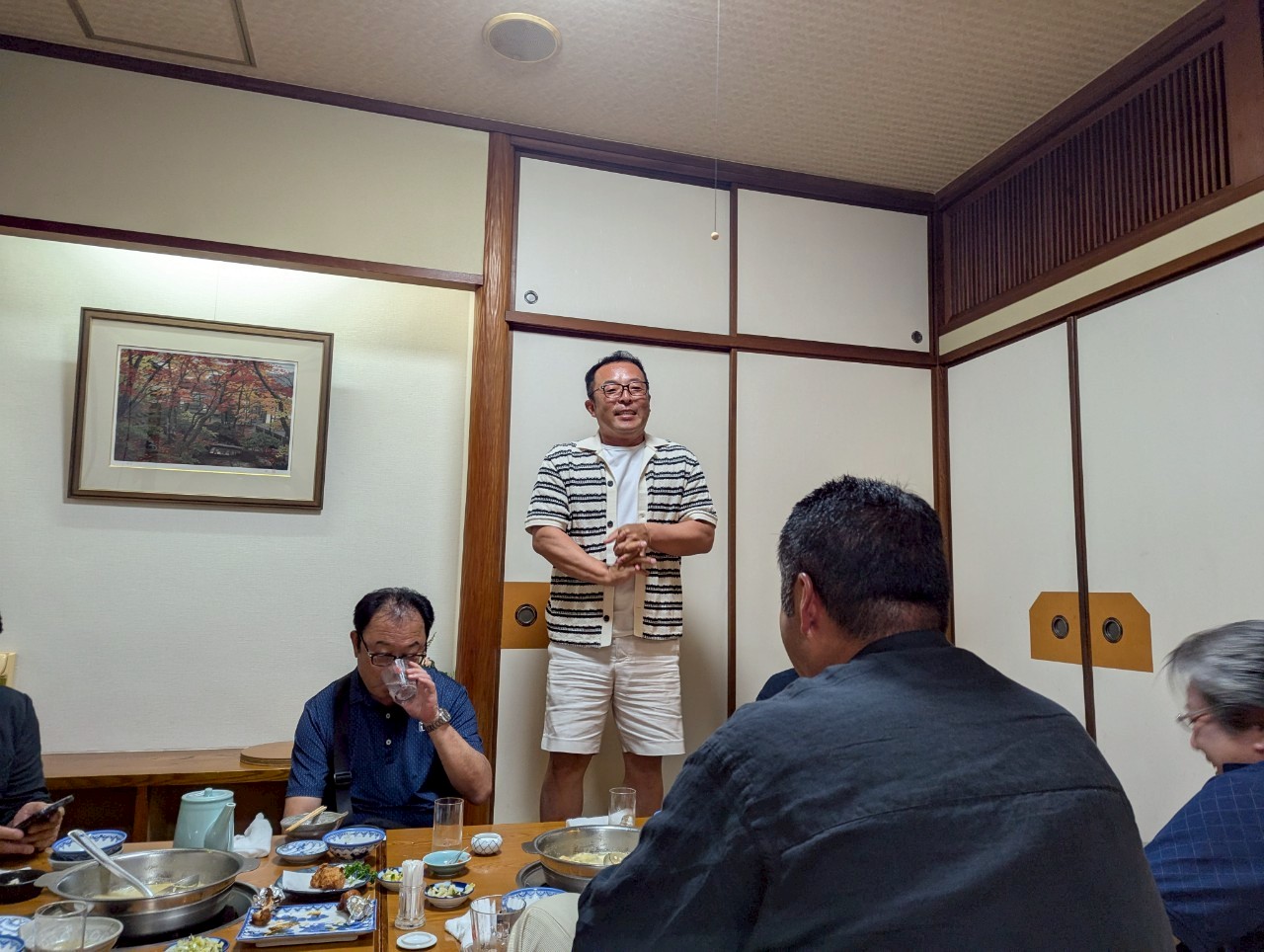 皆さんこんばんは。本日は、会長幹事慰労会ということで、ご参加頂き有難うございます。皆さん楽しそうですが、本日は前会長、前幹事を慰労する会ですので、お忘れなくしてくださいね。細谷前会長、塚原前幹事、一年間お疲れさまでした。新年度も無事にスタートしました。高村幹事にも立派な活動計画書を作って頂き有難うございます。このまま順調に1年間進んでいきたいと思いますので、よろしくお願いいたします。