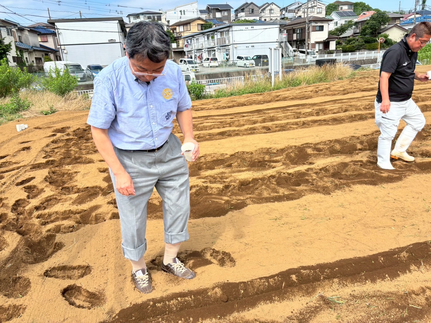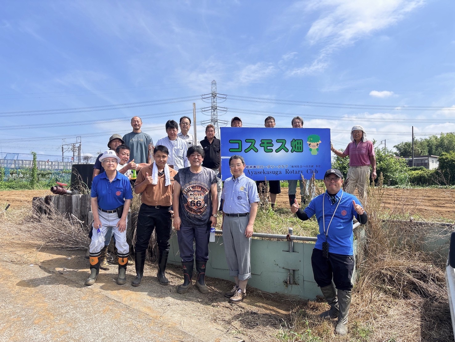 おはようございます。第4グループガバナー補佐大箭です。本日は、第4グループ最初の奉仕活動綾ということで、瀬春日ロータリークラブのコスモスの種まきに参加させていただきました。よろしくお願い致します。